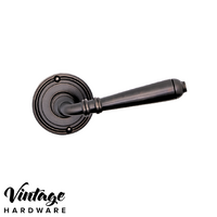 Solid Brass Villa lever on round rose in Antique Brass finish.