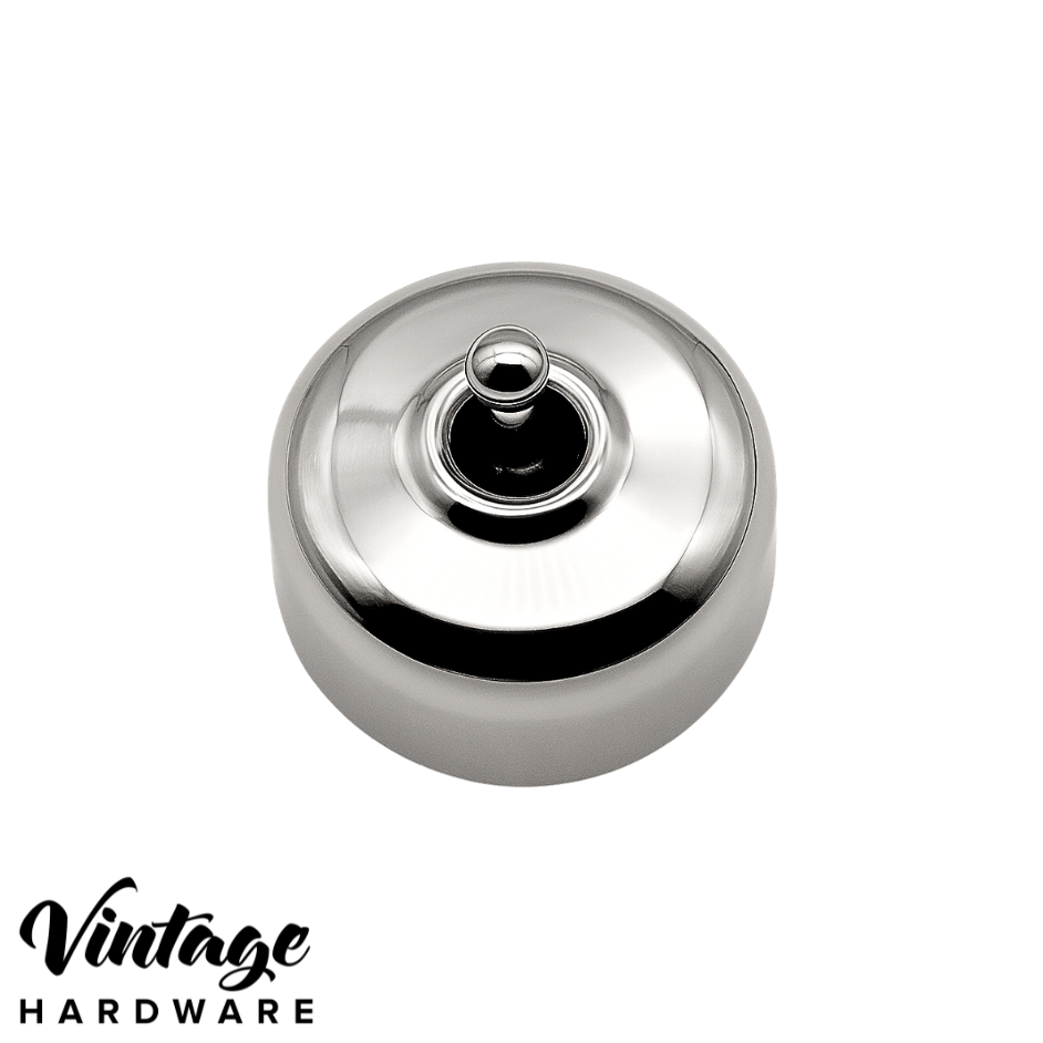 Toggle light switch with brass based cover with Chrome Plate finish.