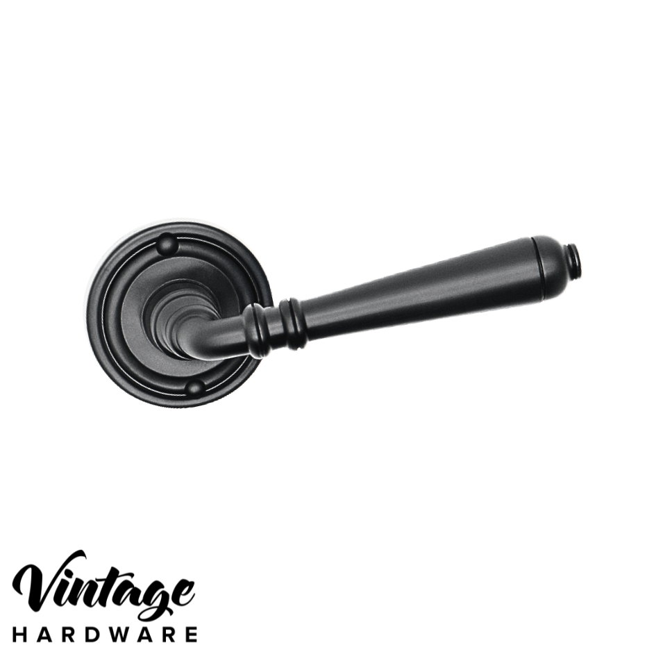 Solid brass Villa lever on round rose with Matt Black finish.